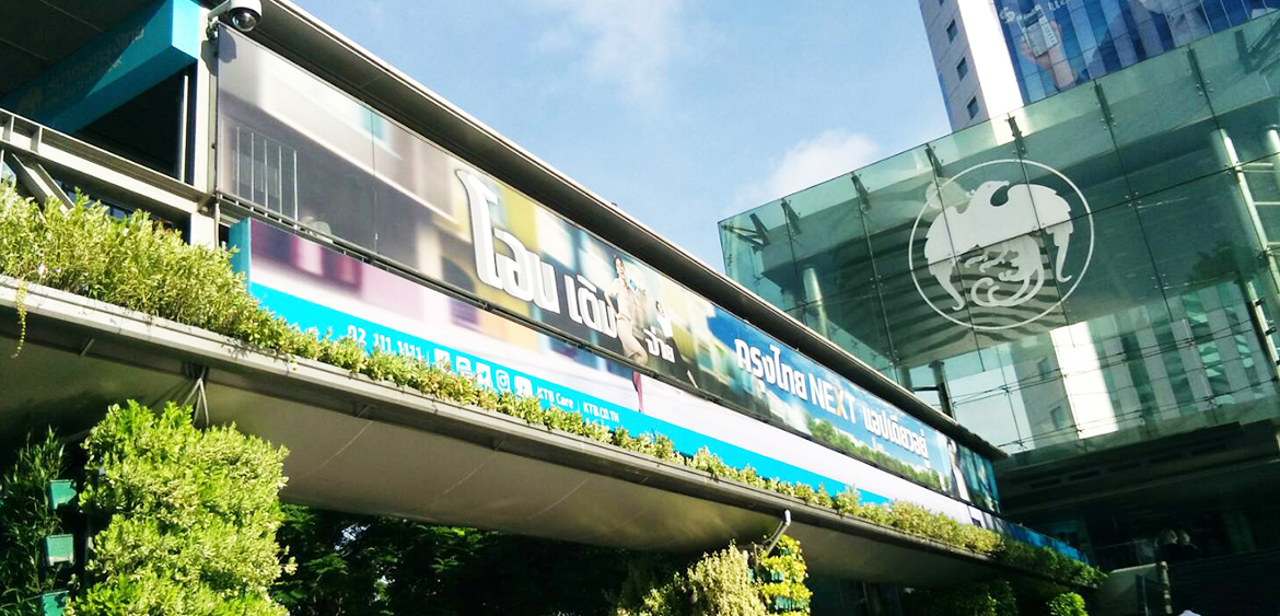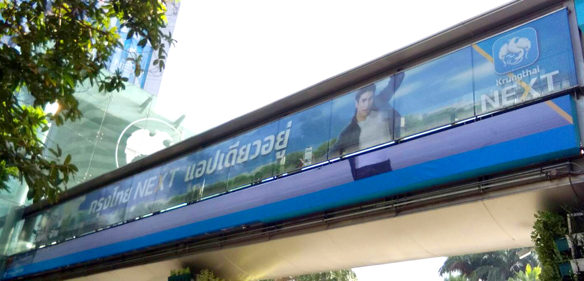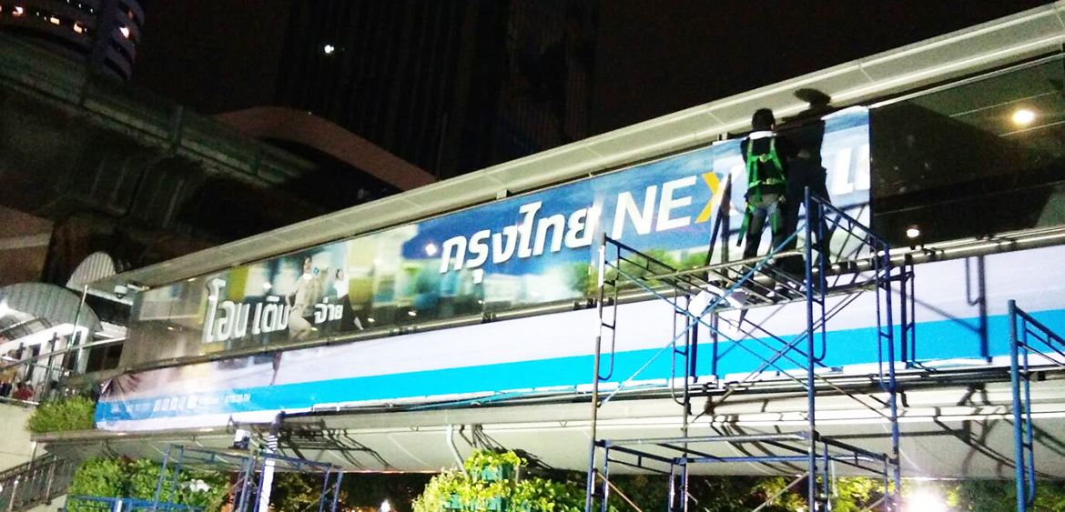 ประเภท : Wrap Sticker See Through กล่องป้ายพร้อมงานพิมพ์ สะพานลอยทางเชื่อมอาคารนานาเหนือ